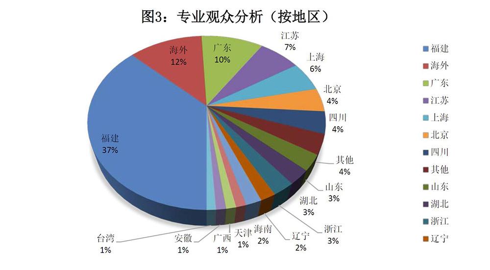 2016年亞太水產養殖展參觀觀眾近萬名,包括3100多名專業買家。亞太展專業觀眾來自國內25個省市自治區,以及國際35個國家。國內觀眾前五名的省市分別為:福建(37%)、廣東(10%)、江蘇(7%)、上海(6%)、北京(4%)。國際觀眾前五名的國家為:美國(17%)、新加坡(8%)、南非(7%)、摩洛哥(6%)、秘魯(6%)。如圖3所示。