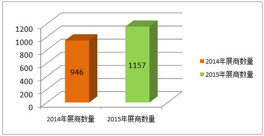 參展商數量:1157家參展企業,與2014年的946家展商相比,增長22%;