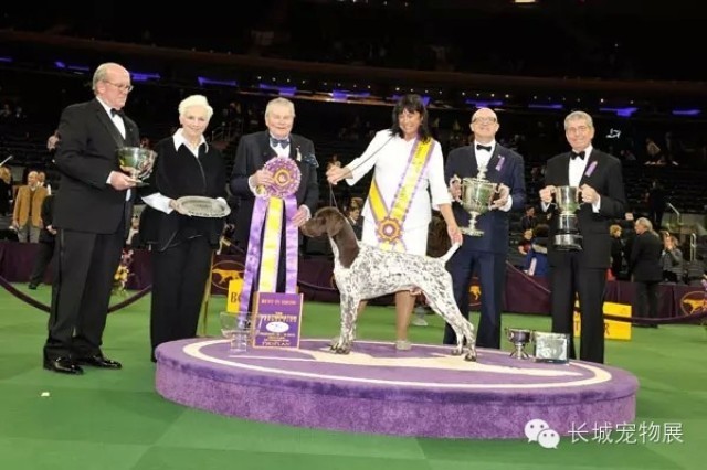 2016年2月15-16日,剛剛結(jié)束的第140屆“西敏寺犬展”,有超過3000只犬只報(bào)名參加。經(jīng)過了整整兩天的激烈比拼,美國時(shí)間2016年2月16日晚終于決選出了第140屆西敏寺犬展最終BIS全場(chǎng)總冠軍!新一屆登頂西敏寺的是一只來自運(yùn)動(dòng)犬組的三歲大的德國短毛指示犬公犬GCH Vjk-Myst Garbonita's California Journey(呼名:CJ)。RBIS得主為日本人擁有的蘇俄獵狼犬母犬CH Belisarius Jp My Sassy Girl。