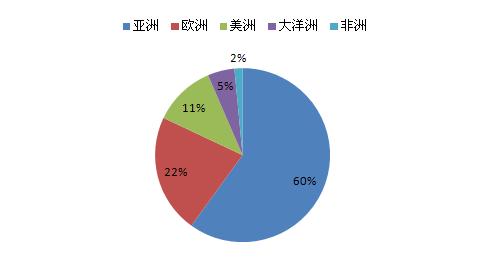本屆展覽會四天共接待觀眾約36000人。根據注冊觀眾提供的信息統計,國內觀眾占68%,國際觀眾占32%;國際觀眾來自全球69個國家和地區,其分布如下圖所示(不含中國):